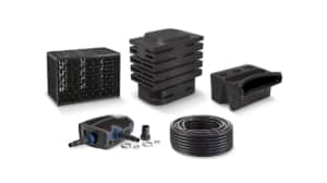 De beekloop-basissets bevatten een vijverbeschermingsdoek, een PVC-vijverfolie, een beekloopbron, maxima reservoirelementen, een pompkamer en de optimaal geschikte vijverpomp met accessoires.